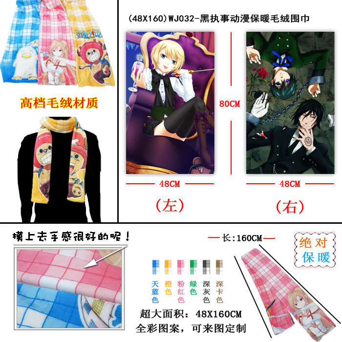 产品名称 : (48X160)WJ032-黑执事动漫保暖毛绒围巾