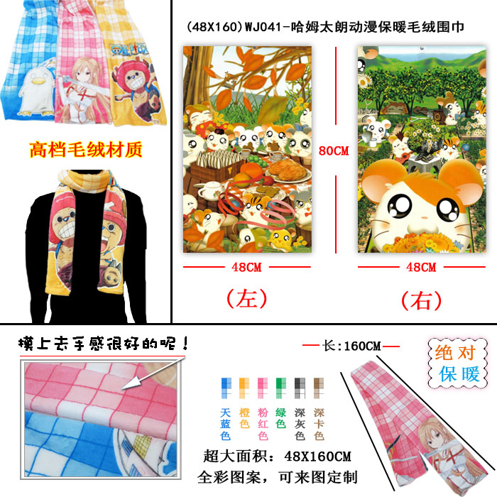 产品名称 : (48X160)WJ041-哈姆太朗动漫保暖毛绒围巾