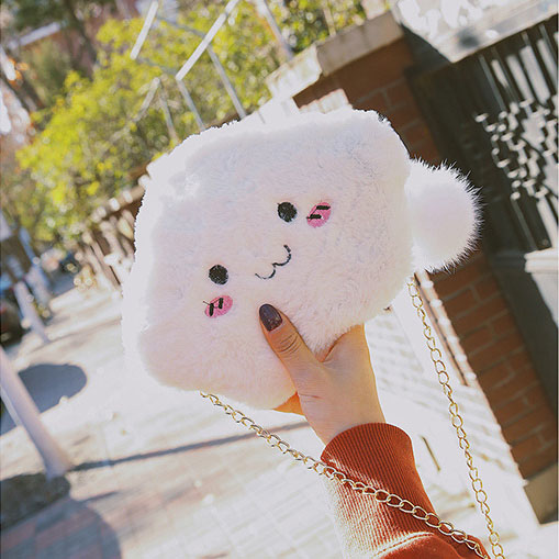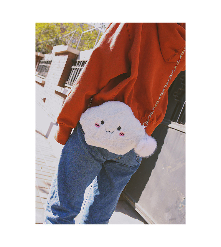 产品名称 : 刺绣云朵毛绒单肩包 斜挎包 白色