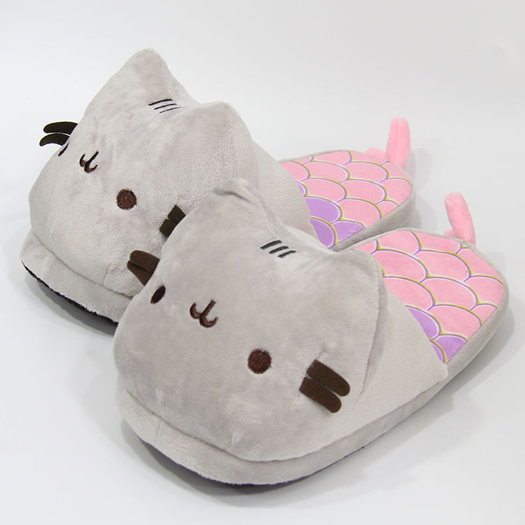 28CM美人鱼胖吉猫 半包毛绒拖鞋 粉色尾