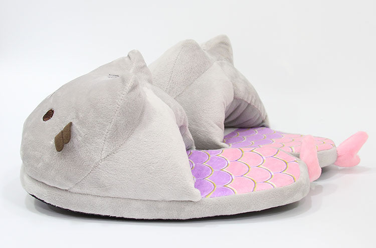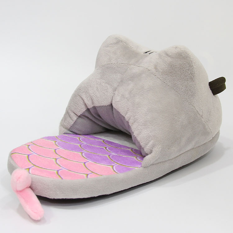 产品名称 : 28CM美人鱼胖吉猫 半包毛绒拖鞋 粉色尾