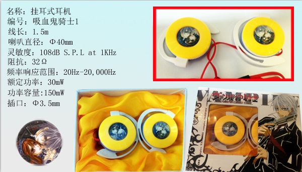产品名称 : 吸血鬼骑士动漫挂耳式耳机