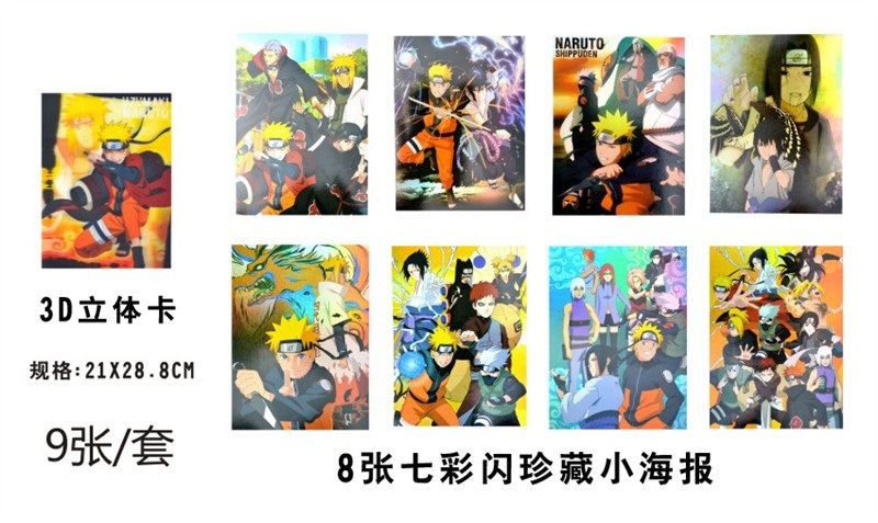 产品名称 : 火影忍者七彩闪珍藏小海报8张一套21*28.8CM(附带3D立体卡)