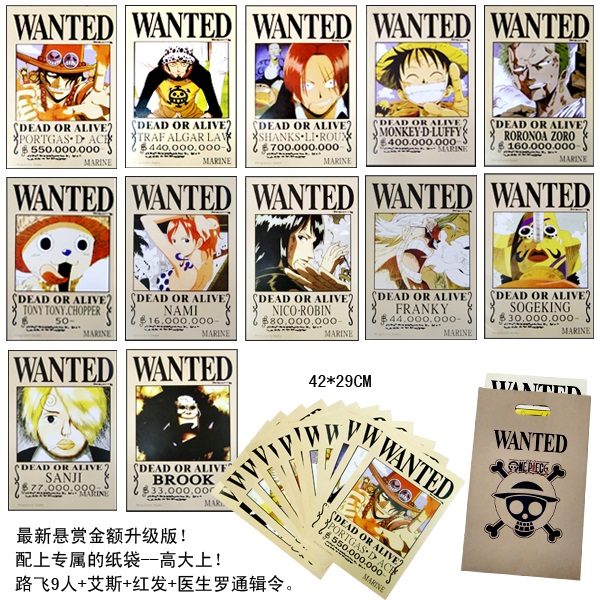 海贼王升级版通辑令路飞9人+艾斯+红发+罗(配纸袋)